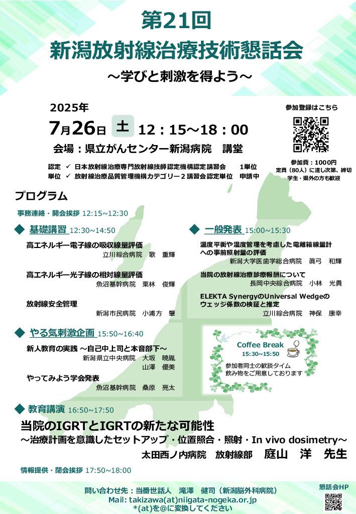 開催場所: 県立がんセンター新潟病院 講堂(定員:80名)